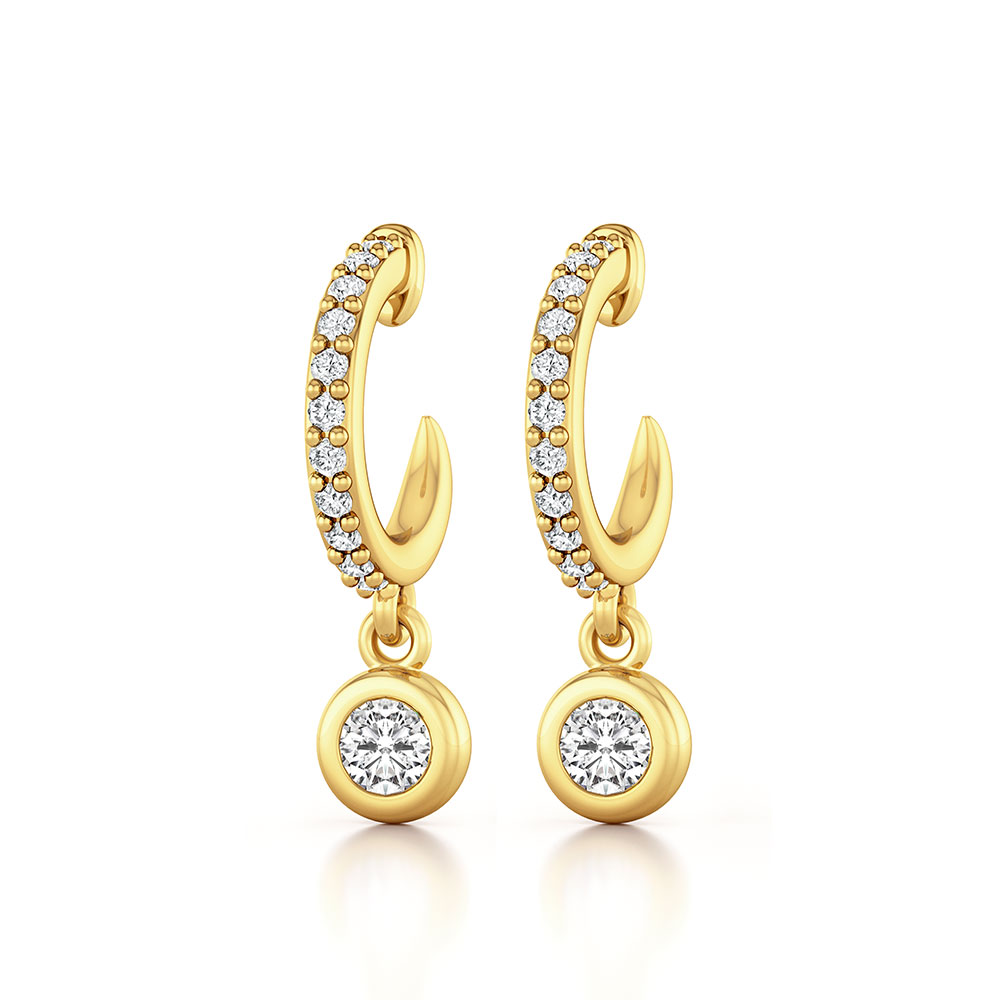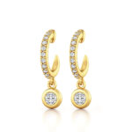 This modern adaptation of the classic hoop is the perfect addition to your everyday look. Forged in solid 18k gold, these contemporary earrings feature two brilliant-cut near-colorless diamonds, suspended from a slightly tapered diamond-encrusted hoop that hugs your lobe. From errands to evenings, these hoops will add sophistication to every occasion!
