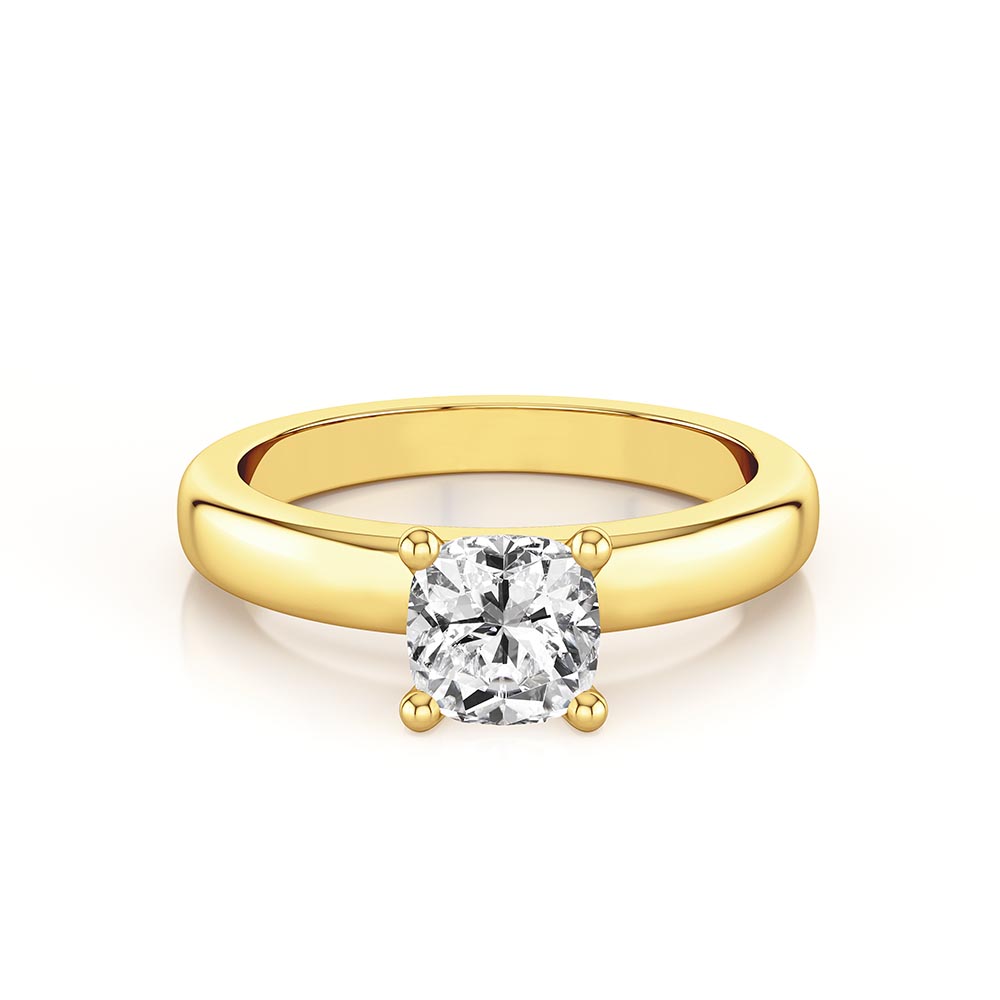 Sculpted by our master craftsmen out of 18k yellow gold while your diamond always sits securely in the opulence of a yellow gold setting.