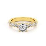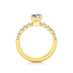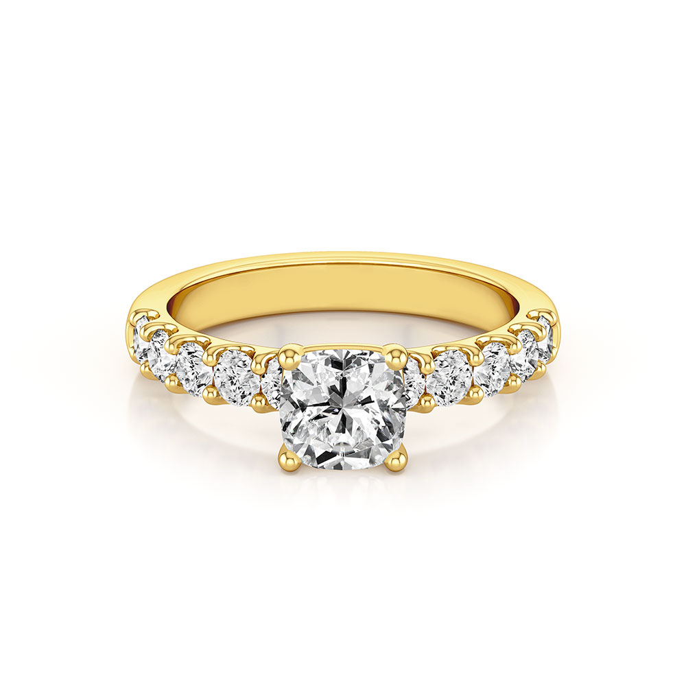 The highlight of our spectacular Symphony Collection features two delicate yet durable prongs, interspersed and acting in concert with each magnificent diamond. Smartly crafted to ensure optimal diamond exposure, the prongs seemingly vanish amidst the brilliance of our near-colorless diamonds.